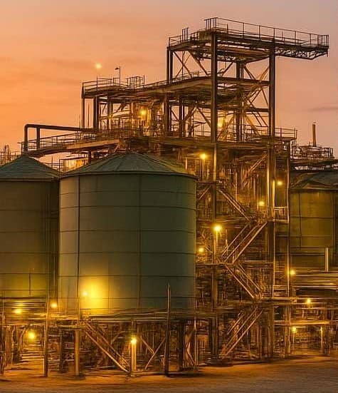 Obuasi gold processing plant at dusk