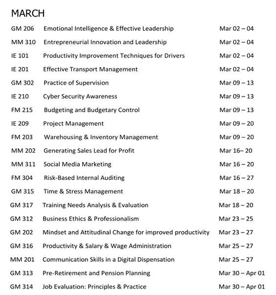 The post 2026 MANAGEMENT TRAINING PROGRAMMES appeared first on Management Development & Productivity Institute.